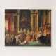 Jacques Louis David - Couronnement de Napoléon et Couronnement de Joséphine à Notre-Dame-de-Paris, 1804. Jacques-Louis David (1748-1825) était un peintre français de style néoclassique, considéré comme le peintre prééminent de l'époque. Napoléon voulait établir la légitimité de son règne impérial, avec sa nouvelle dynastie et sa nouvelle noblesse. À cette fin, il conçut une nouvelle cérémonie de couronnement, contrairement à celle des rois de France, qui avaient mis l'accent sur la consécration (sacre) et l'onction du roi et qui avait été conférée par l'archevêque de Reims dans la cathédrale de Reims. Napoléon fut une cérémonie sacrée qui eut lieu dans la grande cathédrale Notre-Dame de Paris en présence du Pape Pie VII. Napoléon a rassemblé divers rites et coutumes, incorporant des cérémonies de tradition carolingienne, l'Ancien Régime et la Révolution française, le tout présenté dans un luxe somptueux.