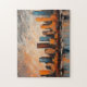 Ce puzzle présente une peinture acrylique abstraite qui capture magnifiquement un paysage urbain au coucher du soleil. Il est composé de bâtiments audacieux aux formes géométriques qui se dressent sur fond d'un ciel dramatique. Les bâtiments, aux nuances de bleu, de gris et de noir, ajoutent une sensation de profondeur et de dimension à la scène. Le front de mer, parsemé d'arbres, ajoute une touche de nature au paysage urbain. Les arbres, d'une vibrante teinte orange, évoquent la saison automnale. Les bâtiments et les arbres projettent leurs reflets sur l'eau, créant un effet de miroir. Le ciel dramatique gris, orange, blanc et bleu semble changer avec le soleil couchant, ajoutant une sensation de dynamisme. Ce puzzle d'art moderne, avec sa représentation abstraite d'une ville au coucher du soleil, est sûr de captiver quiconque avec ses couleurs audacieuses, son imagerie dramatique et son flair artistique. C'est un témoignage de la beauté qui peut être trouvée dans