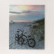 Les bicyclettes sont toujours garées au bord des dunes attendant sur leurs cavaliers. La lueur rose et jaune couvre le ciel tandis que le soleil se couche lentement. Ceci a été pris au Cap San Blas, en Floride en juillet 2018. En octobre, l'ouragan Michael a détruit une grande partie de cette zone. Cette plage faisait partie d'une longue péninsule — maintenant c'est une île.
