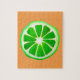 Une tranche verte vibrante mignonne et colorée de fruit de chaux d'une peinture originale par l'artiste Sacha Grossel. Ce grand fruit de style d'art de bruit est vert et très lumineux et coloré sur un fond de couleur orange personnalisable. Original et original.