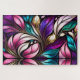 feuilles roses et turquoise et fleurs vitraux look AI art by minx267
