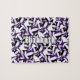 Cette équipe colorant le jeu de puzzle de volleyball a un motif amusant à l'aspect 3 dimensions de violet, noir et blanc volleyball de taille variée tourné partout - customisez avec le nom de l'athlète - par katz_d_zynes