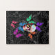 Girly sophistiqués élégants chics, crâne romantique mignon d'imaginaire et beaux papillons multicolores colorés, numériquement collaged, sur un motif baroque gothique vintage noir d'arrière - plan, se perfectionnent pour le jour des morts ou comme joli cadeau de goth pour elle. Visitez le MAGASIN de LEATHER_AND_LACE pour plus de cadeaux gothy alternatifs. Cette conception a été créée d'un crâne vintage et quelques papillons colorés vintages et un arrière - plan floral tourbillonnant noir élégant de damassé, qui a été fait à partir d'une photographie d'une vieille porte. Ce jour élégant de la conception morte de style ferait un grand cadeau pour elle. Les filles alternatives de Goth aimeraient cette conception originale assez romantique. Personnalisez facilement ceci en ajoutant votre nom ou texte pour créer un cadeau de Person qu'elle aimera.