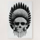 Crâne avec coiffure amérindienne. Crâne Tribal Noir et Blanc Art Sombre.
