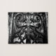 Une vieille croix de fer forgé dans le coeur d'une porte sur une crypte en noir et blanc sur un puzzle.