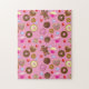 Puzzle à tirage graphique coloré représentant des beignets, des cupcakes et des hommes en pain d'épice. Sur un bel arrière - plan rose. Belle idée cadeau pour tous ceux qui aiment la cuisson, ou tout simplement les gâteaux.