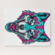 Puzzle Cyberpunk Neon Wolf - Synthwave Robotic Animal