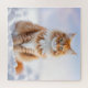 Puzzle représentant une peinture d'un chat chaton gingembre dans une scène merveilleuse hivernale. Agréable pour les adultes comme pour les enfants.