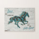 Profitez de ce Puzzle Cheval "One Of A Kind" ! Il comprend une Silhouette de Cheval Galloping en Turquoise, Noir & Or et les mots inspirants... "VIVRE COMME QUELQU'UN A LAISSÉ LA PORTE OUVERTE"! Il s'agit d'un graphisme original créé par l'artiste Kerry Miller. Bon appétit !