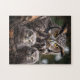 Un puzzle de la famille des chouettes avec un hibou adulte et deux chouettes.