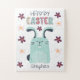 Puzzle de Pâques pour les enfants, avec des fleurs et un mignon lapin de dessin animé. La légende dit Joyeux Pâques. Personnalisable avec le nom de l'enfant.