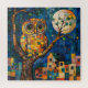 Puzzle de puzzle de hibou aux couleurs riches. Style peinture à l'huile avec un village très obstrué sur lequel le hibou est assis en hauteur dans la branche de l'arbre. La lune brille chaudement dans le ciel nocturne. Cette oeuvre d'art moderne se traduit bien par un puzzle et ferait un merveilleux cadeau pour différentes occasions.