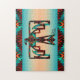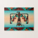 Profitez de ce Puzzle Tribal Thunderbird unique "One of a Kind" ! Il comprend un Thunderbird tribal amérindien sur un Arrière - plan Sunset Turquoise et Orange...Entouré d'une frontière en Turquoise, Orange & Noir! Design D'Art Original Par L'Artiste Kerry Miller.