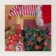 Ce dessin présente une photographie amusante et décalée des jambes d'une jeune femme en bas rouge et blanc alors qu'elle décore avec enthousiasme son arbre de Noël à temps pour les célébrations.