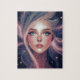Perdez-vous dans le regard captivant de ce puzzle étonnant mettant en vedette une femme énigmatique aux yeux émeraude lumineux et aux cheveux éthérés et flottants. Entourée d'une lueur magique sur fond sombre et étoilé, cette pièce d'art imaginaire offre une expérience magnifique et stimulante pour les amateurs de puzzle et les amateurs de beauté mystique.