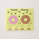 Dansons comme les beignets de fraise et de chocolat ! Ils dansent et aiment simplement la vie. Drôle et doux, ces beignets pourraient juste apporter un sourire au visage de celui qui reçoit ce puzzle. Personnalisable . Travail original; c) Sharon Lee Hudson. Tous droits réservés.