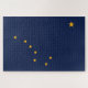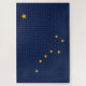 Cette conception comprend le drapeau de l'Alaska, qui est un état à l'extrémité nord-ouest de la côte ouest des États-Unis, juste en face du détroit de Bering d'Asie. Exclave des États-Unis, elle borde la province canadienne de la Colombie-Britannique et le territoire du Yukon à l'est et au sud-est et a une frontière maritime avec l'Okroug autonome de Tchoukotka en Russie à l'ouest. Au nord se trouvent les mers de Chukchi et de Beaufort de l'océan Arctique, et l'océan Pacifique se trouve au sud et au sud-ouest. La plus grande ville d'Alaska à Anchorage, tandis que la capitale de l'État à Juneau. Le surnom de l'Alaska est "La Dernière Frontière". Le drapeau de l'état de l'Alaska comprend huit étoiles dorées, formant le Big Dipper et Polaris, sur un champ bleu foncé.