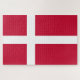 Ce dessin présente le drapeau national du Danemark, pays nordique d'Europe du Nord. La partie continentale danoise, la plus méridionale des régions scandinaves, se compose d'une péninsule, de Jutland, et d'un archipel de 443 îles nommées, dont la plus grande est Seeland, Funen et l'île Jutlandic Nord. Le Danemark se trouve au sud-ouest de la Suède, au sud de la Norvège et au nord de l'Allemagne. Copenhague est la capitale et la plus grande ville du Danemark ; Aalborg, Aarhus, Esbjerg, Horsens, Kolding, Odense, Randers, Roskilde et Vejle sont d'autres grandes villes.