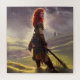 Magnifique puzzle numérique d'oeuvres d'art carré à rendu AI, avec roux Druid Warrior Princess dans des collines verdoyantes celtiques.