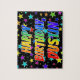 Cette conception amusante et vibrante de puzzle sur le thème de l'anniversaire a le message "HAPPY BANTHDAY, DUSTIN" avec les personnages ayant un spectre arc-en-ciel coloré inspiré motif dégradé, en plus d'un champ animé d'étoiles arrière - plan motif. Un puzzle vibrant comme celui-ci pourrait être utilisé pour envoyer des voeux d'anniversaire à quelqu'un du nom de Dustin. [~Z0000468]