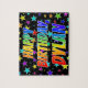 Ce design amusant, excitant, sur le thème de l'anniversaire de puzzle comprend le message "HAPPY BANTHDAY, DYLAN" avec les personnages ayant un spectre arc-en-ciel coloré inspiré motif dégradé, en plus d'un champ dynamique d'étoiles arrière - plan motif. Un puzzle aussi excitant pourrait être utilisé pour envoyer des voeux d'anniversaire à quelqu'un du nom de Dylan. [~Z0000468]