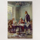 Ce dessin présente un tableau montrant une scène de l'histoire américaine. Il représente John Adams, Thomas Jefferson et Benjamin Franklin dans leur travail sur la Déclaration d'indépendance. Un papier a été jeté sur le sol, suggérant que le document a été travaillé et remanié avec acharnement. John Adams était un représentant du Massachusetts, qui est devenu le deuxième président américain. Thomas Jefferson était un représentant de la Virginie, qui est devenu le troisième président des États-Unis. Benjamin Franklin était un représentant de la Pennsylvanie, qui était connu comme l'un des intellectuels les plus importants des Pères fondateurs. La Déclaration d'indépendance a été présentée au Congrès le 4 juillet 1776. Depuis, le Jour de l'Indépendance est célébré à cette date chaque année.