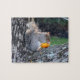 Ce puzzle mignon comporte un écureuil gris dans un arbre mangeant d'un mini citrouille. L'écorce de l'arbre et l'arrière - plan de -de-foyer font à ce puzzle un peu d'un défi.