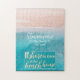 Votre nom de famille et l'emplacement de votre maison de plage est écrit en calligraphie blanche élégante sur votre puzzle. Dans l'arrière - plan se trouve une photo au-dessus d'une vague qui rencontre le rivage et laisse une trace de mousse blanche. Profitez de mettre le puzzle ensemble pendant les jours de jeux de famille et les réunions ou de le donner comme un cadeau personnalisable à la famille et les amis.