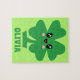 Un mignon puzzle shamrock vert pour les enfants. Personnalisez avec son nom pour faire un cadeau amusant pour une fille!