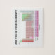 Êtes-vous dans votre élément ? Demandez-vous et d'autres cette question clé avec une dose d'attitude de chimie avec ce puzzle comportant le Tableau des éléments périodique, avec la question "sont vous dans votre élément ?" Faites d'autres faire une double-prise avec l'attitude éducative et scientifique aujourd'hui ! Perfectionnez le puzzle pour des commandants de chimie, des professeurs de chimie, des chimistes, des scientifiques, et n'importe qui qui savent la façon dont le principe fondamental il est d'être dans son élément !