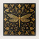 libellule dorée minutieusement détaillée avec élégants ornements floraux sur noir frappant. Un design étonnant qui met en valeur l'artisanat artistique avec un contraste audacieux.
