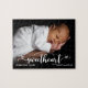 C'est une façon amusante et unique de présenter l'arrivée d'un nouveau bébé. Le mot "chérie" apparaît au-dessus de la photo dans un texte écrit à la main de style calligraphie accentué de coeurs. Personnalisez avec votre photo préférée de votre nouveau lot de joie et ajoutez le nom, la date de naissance et la taille.