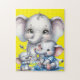 Ce beau puzzle avec une mère et deux bébés éléphants jouant avec de l'eau sera mignon à assembler