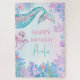 Les filles Mermaid Bash sous la mer 1er anniversaire Invitation. Cette adorable invitation présente une queue de sirène colorée avec des motifs de parties scintillant en faux or.