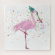 Une jolie illustration d'une fête de flamand et de s'amuser ! Flamant rose portant un casquette de fête et faisant cor de fête avec des confettis qui pleuvent dessus. Que les célébrations commencent ! Parfait pour tous ceux qui aiment les illustrations d'animaux drôles. Idéal pour un cadeau d'anniversaire, un décor de pépinière, un salon pour enfants, un décor maison, cadeau de Noël ou cadeau pour toute autre occasion spéciale.