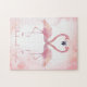 Ce puzzle présente deux flamants roses baisants de couleur aquarelle. Sous les flamants roses, vous pouvez ajouter vos noms dans une police de coordonnées rose cursive. Le puzzle a un arrière - plan d'aquarelle rose.