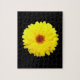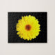 Ce puzzle impressionnant présente une photo d'une jolie fleur de marigold jaune fluorescent sur un arrière - plan noir.