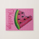 La conception du puzzle présente une illustration originale d'une tranche de pastèque rose juteuse. Personnalisez simplement vos informations. Cette illustration est également disponible sur d'autres produits. Ne vois-tu pas ce que tu cherches ? Vous avez besoin d'aide pour la personnalisation ? Contactez Rebecca pour avoir quelque chose conçu pour vous.