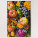Ce puzzle coloré présente une récolte abondante comprenant des pommes croustillantes, des citrouilles d'orange, des herbes fraîches, des raisins de concorde, du chou rouge et des gourdes. Un délicieux étalage de fruits et légumes frais.
