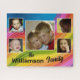 A fun puzzle for the whole family. Five of your favourite photos are placed on a colourful wavy background. The 16x20 inch size provides a nice challenge. However, the design will fit smaller size puzzles too. See Size Options. Personalize the puzzle with a name in large type at the bottom. All photos and the name are easily changed by using the template. If other changes are desired (different type font, colour, size, or placement), select "Personalize this design" then select "Edit using Design Editor." Also use the Design Tool if any of your photos need to be cropped in order to fit a frame (all photos are square). Makes a great gift. You may also want to scroll down to "Transfer design to a product" for a limited list of items this design can be used on.