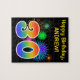 Cette conception amusante et dynamique de puzzle présente un motif coloré inspiré par des feux d'artifice festifs, ainsi que le numéro "30" avec un arc-en-ciel multicolore comme un motif dégradé, sur un arrière - plan de couleur noire. Il comporte également un nom et un message d'événement personnalisés, comme un message d'anniversaire. Un puzzle comme celui-ci pourrait être une façon amusante d’envoyer un message de salutation pour célébrer le trentième anniversaire de quelqu’un. [~Z0000329]