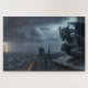 Ce puzzle de scie présente un gargouille aux yeux brillants accroché sur une corniche surplombant une ville dans une nuit orageuse, avec la foudre clignotant au loin. Les tons gris en feraient probablement un casse-tête assez difficile. Ce serait un excellent cadeau pour un passionné de scie.