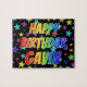 Ce puzzle dynamique et animé sur le thème de l'anniversaire a le message "HAPPY BANTHDAY, GAVIN" avec les personnages ayant un spectre coloré arc-en-ciel inspiré motif dégradé, ainsi qu'un passionnant motif arrière - plan de champ étoile. Un puzzle coloré comme celui-ci pourrait être utilisé pour envoyer un message d'anniversaire à quelqu'un nommé Gavin. [~Z0000468]