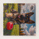 An adorable German Shepherd puppy poses with his bright, red ball in a grassy field. Very cute puzzle, perfect for anyone who loves dogs.