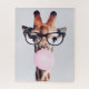 PUZZLE GIRAFFE PORTANT DES VERRES SOUFFRANT UN BUBBLEGUM