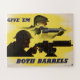 Give 'EM Both Barrels WW2 Military & Factory workers is a WPA advertisement in support of the servicemen warriors fighting overseas to defend America. Image was made for the World War 1-2 war effort. WPA image is in public domain.