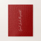Le puzzle rouge massif comporte "Good Luck, [NAME]" dans une police de caractères blanc au centre. Personnalisez le texte drôle dans la barre latérale. Fait un grand cadeau personnalisé pour quelqu'un qui aime un défi difficile. Copyright ©Claire E. Skinner. Tous droits réservés.