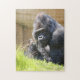 Un grand salon de Gorilla noire au soleil près d'un stand de haute herbe verte. L'herbe plus courte fournit le premier plan parfait, menant à sa pose réfléchie. Il regarde dans votre direction, et vous vous demandez ce qu'il pense. Si vous aimez les gorilles alors, commandez le vôtre aujourd'hui !