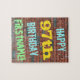 Cette conception amusante de puzzle sur le thème de l'anniversaire comporte un message comme "HAPPY 97th BIRTHDAY, FIRSTNAME!", où le nom peut être personnalisé. L'arrière - plan est représenté par un mur en brique composé de briques de couleur rougeâtre. Le texte du message personnalisable comporte des couleurs comme le bleu, le jaune et le vert, et il a un aspect inspiré de celui des graffitis peints. Un puzzle comme celui-ci pourrait être utilisé comme une façon amusante d'envoyer des voeux d'anniversaire à quelqu'un qui fête son quatre-vingt-dix-septième anniversaire, et qui peut-être aime vraiment faire des casse-tête. [~Z0000285]