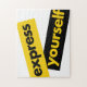 Design typographique moderne, simple et minimal d'un dicton "Express soi-même" en noir et jaune. Art graphique dynamique, cool, urbain, tendance et dynamique